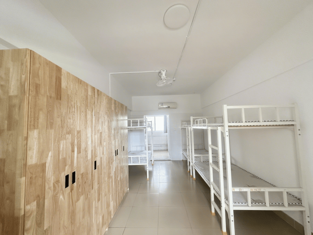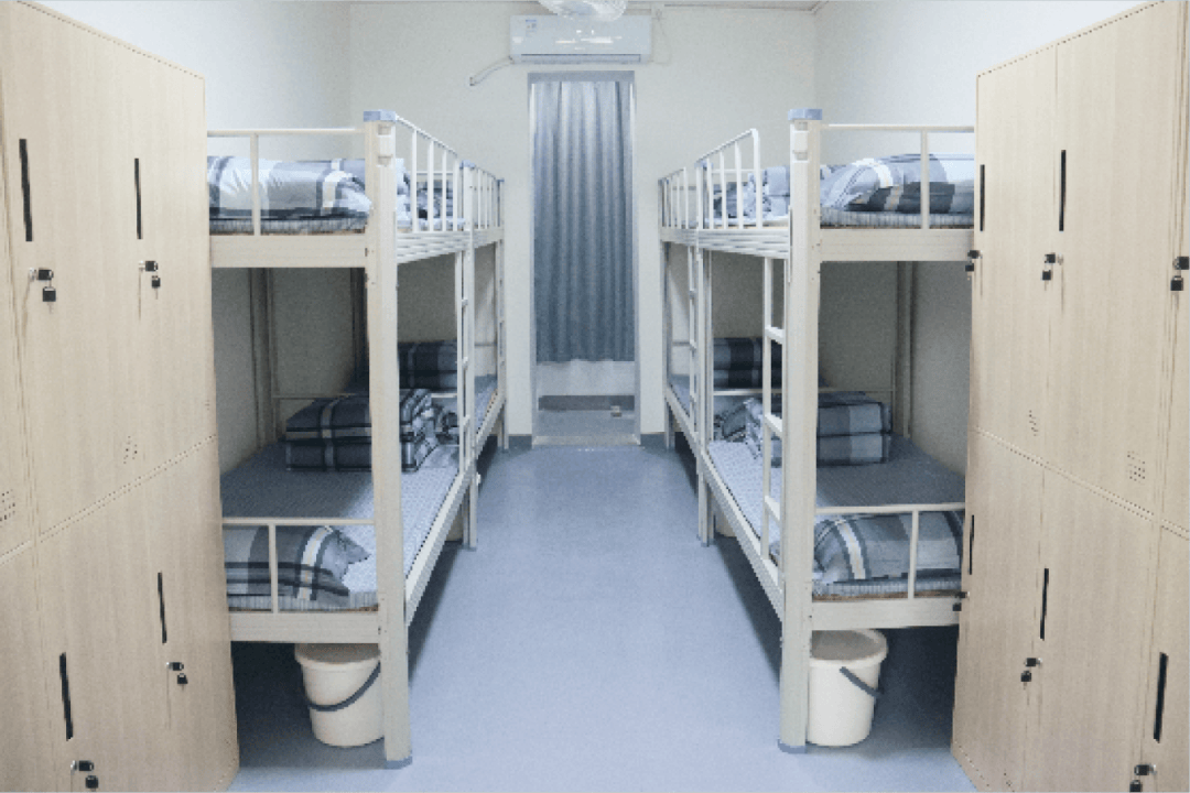 学校提供四人间学生宿舍,采用上床下桌一体化设计,每位学生配备独立书桌与储物柜。宿舍内设施齐全,涵盖独立卫浴、洗漱台、阳台、全自动洗衣机及公共休闲区。宿舍管理严格,实行24小时宿管值班巡查制度,夜间统一熄灯管理,全方位保障学生休息质量与校园安全。