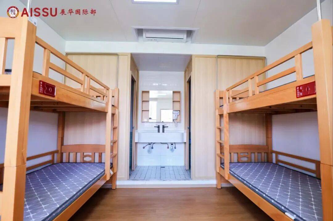 提供公寓式学生宿舍与人性化生活管理服务,宿舍为4人间标准,环境整洁舒适,每间均配备独立空调与卫生间,并安排专职生活教师负责学生衣物清洗等日常照料。